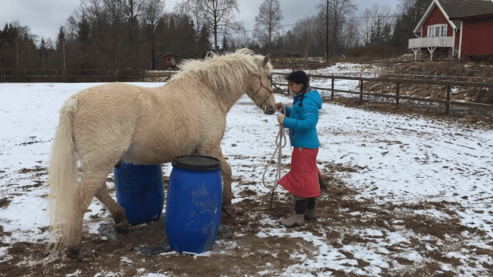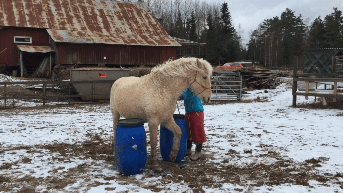 I onsdag var Solveig på besök och gjorde lymfmassage på Hidalgo. Hon berättade även dör Hanna praktikanten om hennes verksamhet inom kompliterande behandlingsmetoder såsom lymfmassage, massage, akupressur och stresspunktbehandling. Det är så intressant att få ta del av andras kunskap och erfarenhet. Givetvis är det veterinär i första hand samtidigt som kompliterande behandlingsmetoder kan vara bra som nästa steg i en rehabilitering eller som underhåll beroende på vilket behov hästen har för ögonblicket. Resultatet av behandlingen blev en trött Hidalgo, förståeligt då hans system hade många blockeringar pga olika själ. Vi tog en fika efteråt som följdes av lite uppvisning i träning i trånga utrymmen med Hidalgo.