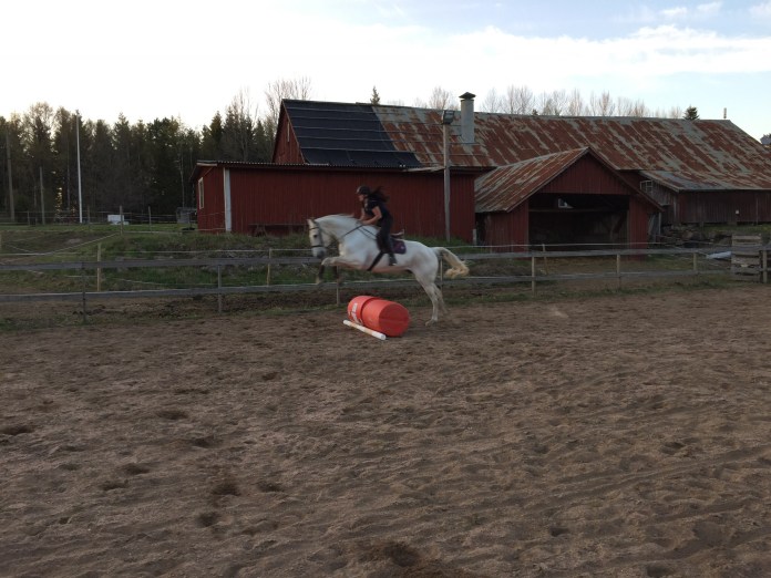 I hoppningen var det att vänta ut, hålla om, följa med för att få en bra jämn rytm. I all ridning gäller det att göra många halvhalter, ställningar, hörnpassningar, spårridning mm. Dock alltid inte så lätt att hålla frukost på allt samtidigt. Jag brukar bryta ner del för del för att sedan plock ihop det igen för då upplever jag att det är lättare att få det funka istället för att tjata hål i huvudverk med information där det lätt blir kortslutning till slut pga för mycket info på en och samma gång.