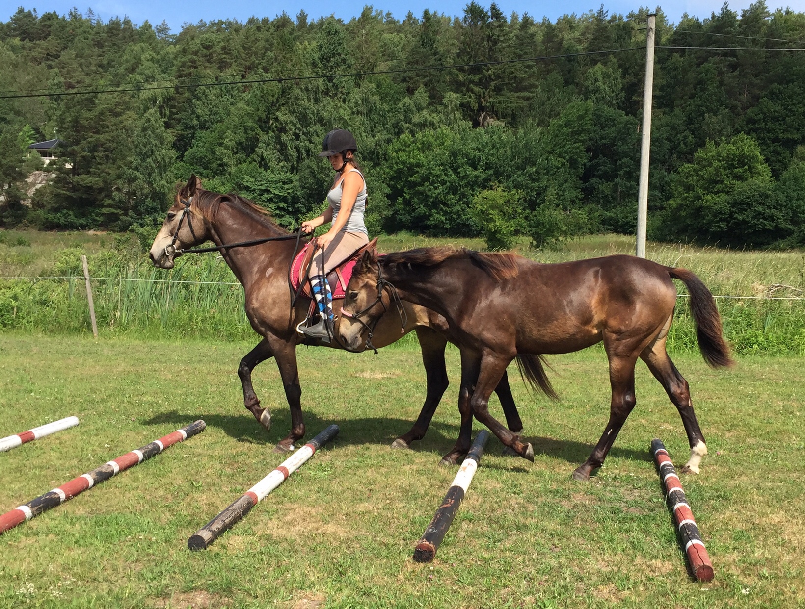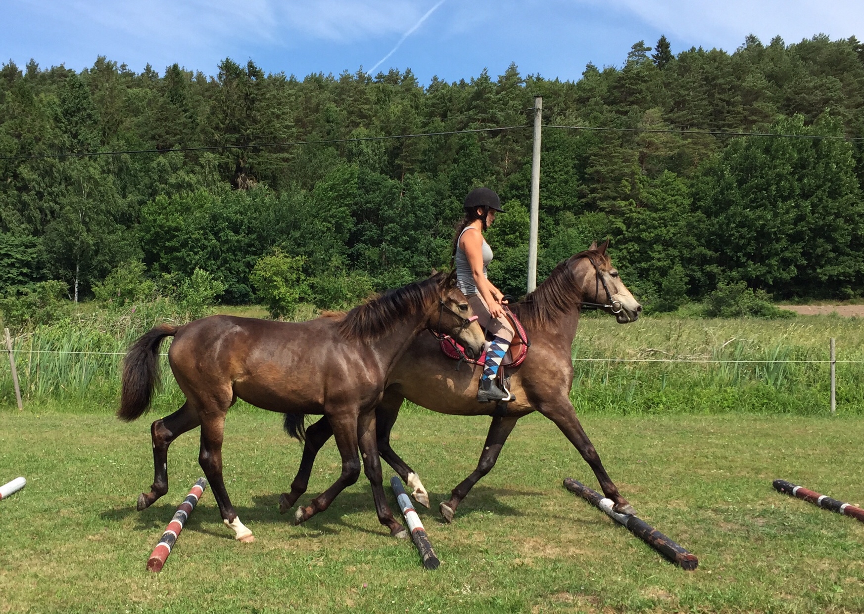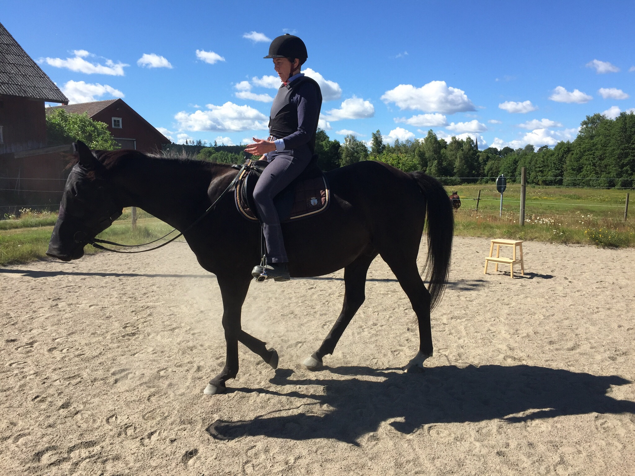 Så lite träning över bommar i skritt och sedan trav i båda varven. Helena var så glad och nöjd med träningspasset och ser nu fram emot turer i skogen tillsammans med Lady vid sin sida efter lite mer träning förstås. Hon skall även träna med stallkompisarna så de kan rida ut tillsammans framöver. Bra jobbat Helena 👏🏼.