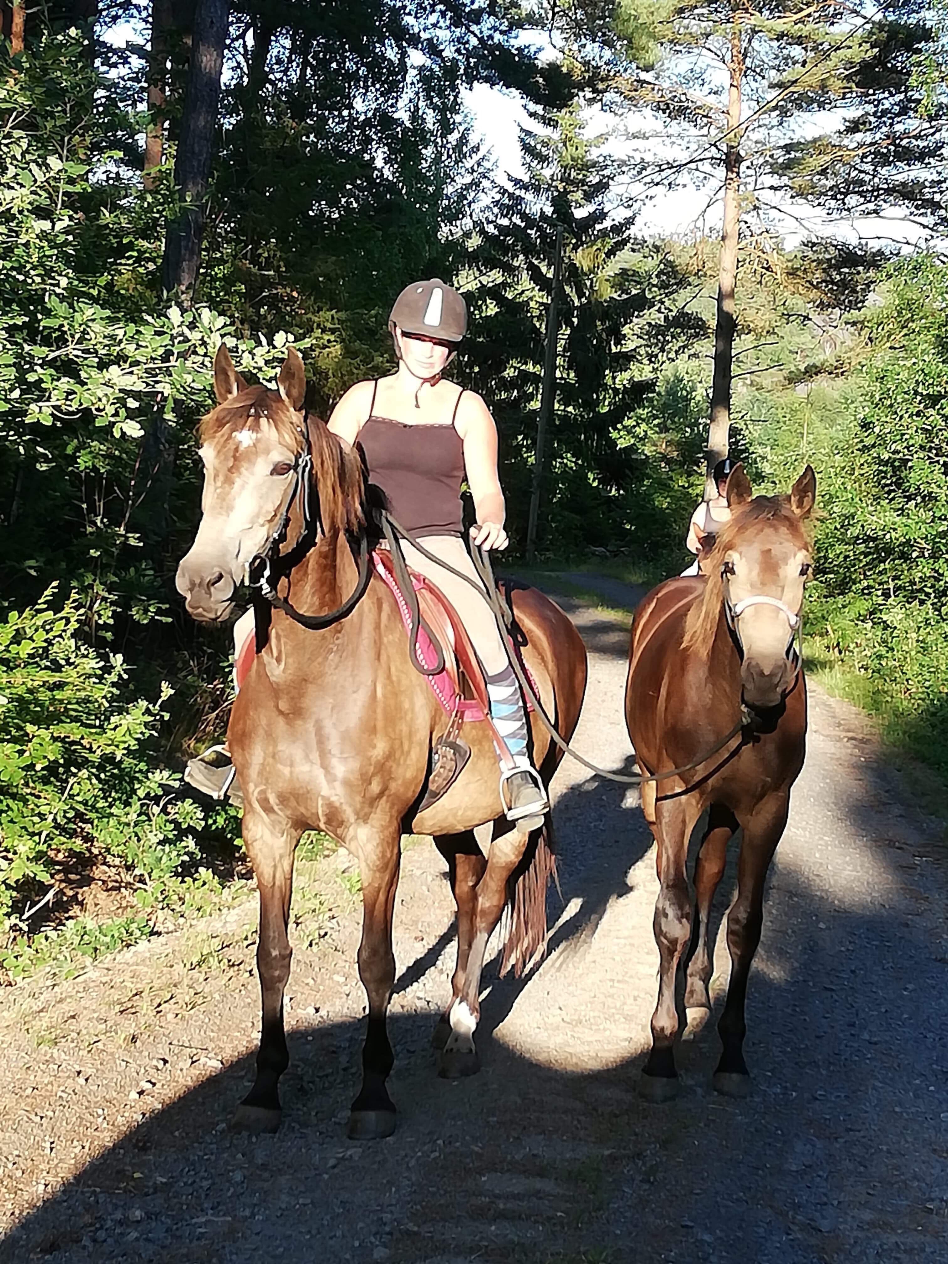På tur med Ola, Hope, Sunrise och Hidalgo i vackra naturen i Håhult.